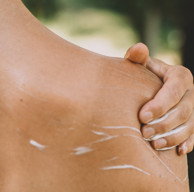 Na obličej i celé tělo používejme hydratační kosmetiku s UV filtrem. Ráno i odpoledne.